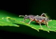 象甲也被称作象鼻虫,因为这种昆虫大多数都有一条显眼的“长鼻子”。我们今天要拍摄的实象甲,是象甲家族中鼻子最长的一类。它的长鼻子可不是像……