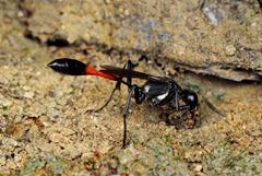 沙泥蜂在全国各地都很常见,它属于体型修长的蜂类,胸部和腹部连接处非常纤细,腹部前半截为橘红色,很容易辨认。白天阳光充足的时候,沙泥蜂非……