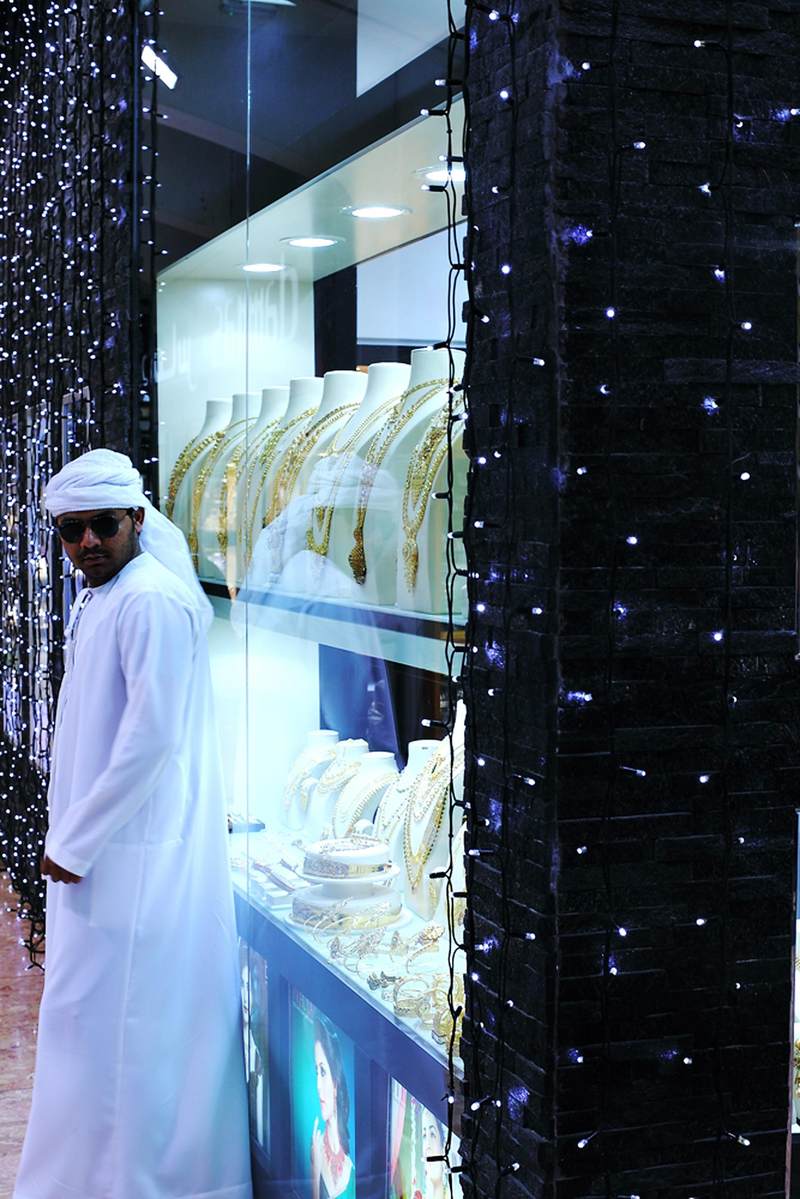 与漫漫黄沙相对应的,就是迪拜黄金街上金光闪闪的黄金珠宝。没有人会否认迪拜是国际黄金珠宝业的风向标,不论是阿拉伯风格的,还是欧洲现代时尚的,它们都显示出独有的迪拜气质,那就是用料足、分量重,夸张、大气、奢华。虽然迪拜男人一身白,女人一身黑,但要论其一掷千金来,谁又敢轻易与之争锋?不得不承认,迪拜是一座既神秘又开放,即传统又现代的未来之城。