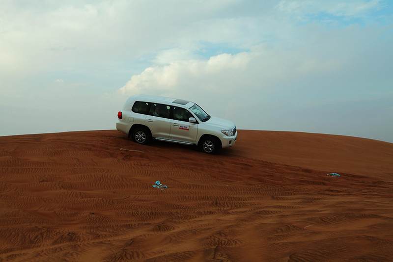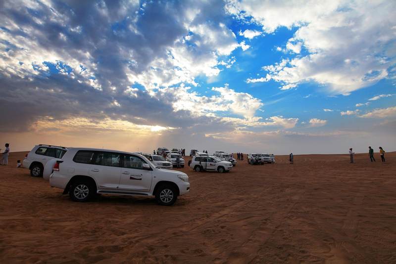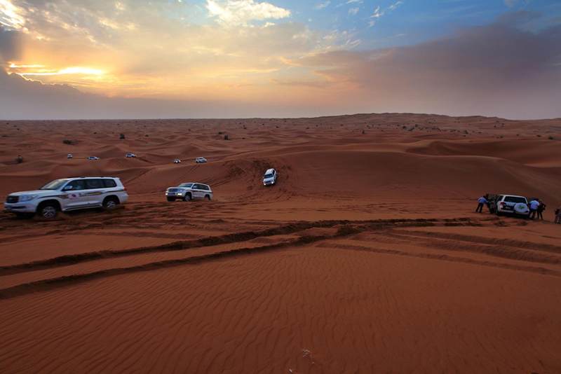 这片沙漠位于迪拜和沙加两个酋长国之间,是阿拉伯地区比较古老的沙漠之一,面积约有1200平方公里,常年吸引着无数沙漠越野爱好者前来冒险、嬉戏。只因为驾驶这种被称为“沙漠之舟”的越野车冲沙,是阿联酋乃至整个阿拉伯地区最受欢迎的民间趣味运动之一。虽然冲沙的方式看上去大同小异,但据说门道可不少,是一项极其富有挑战性的运动,而且需要特殊的驾驶证。冲沙者驾驶着四轮驱动越野车或改装的吉普车,沿着沙丘从下向上冲向沙丘的顶峰,然后在沙峰沙谷间滑行,自由地穿梭往来,犹如在沙漠当中激情冲浪,非常刺激。
