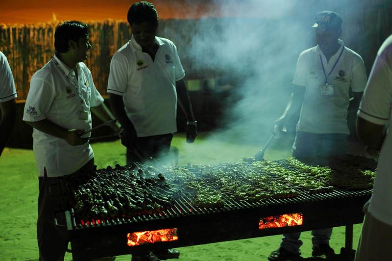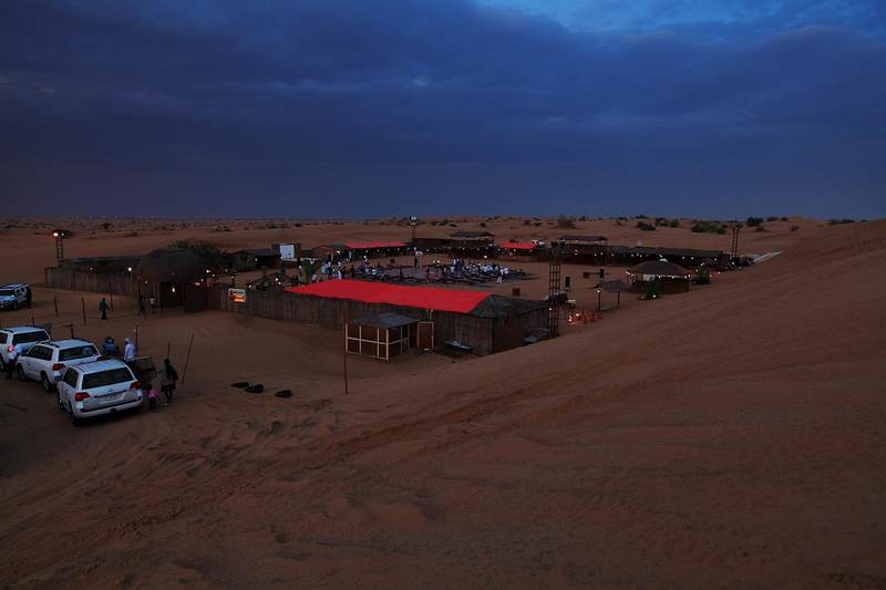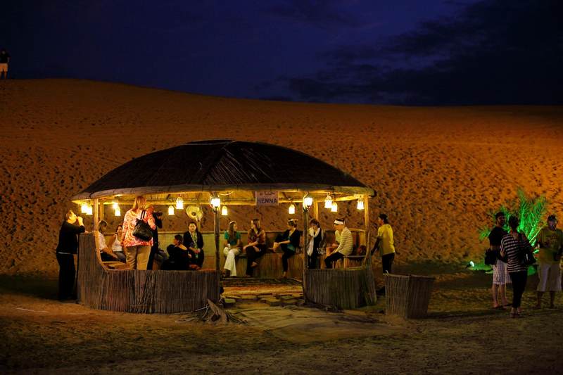 当天边的火烧云和我们冲沙的激情渐渐褪去,沙漠农庄的夜宴才正式开始。所有的越野车晚上都集中到这里,我才深深地感觉到,原来迪拜人民也跟中国人民一样,极其热衷于农家乐。只不过谁也没想到这顿豪情夜宴的现场,会摆在茫茫沙漠之中。