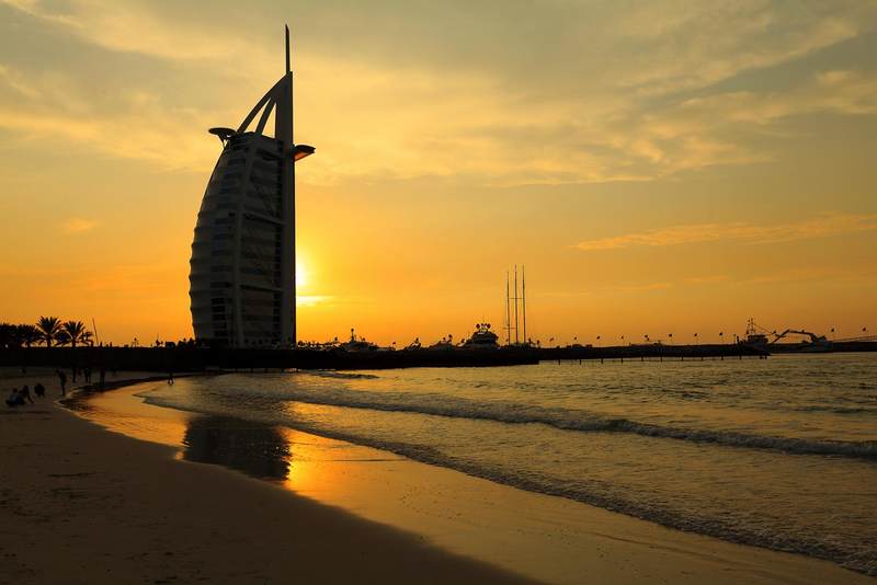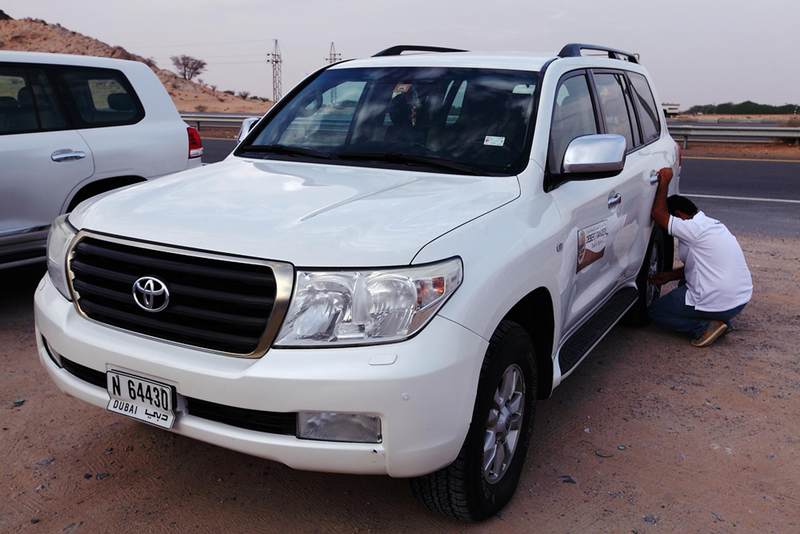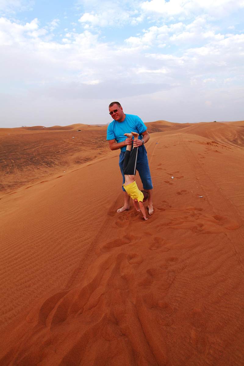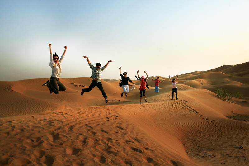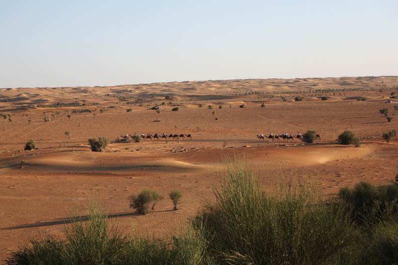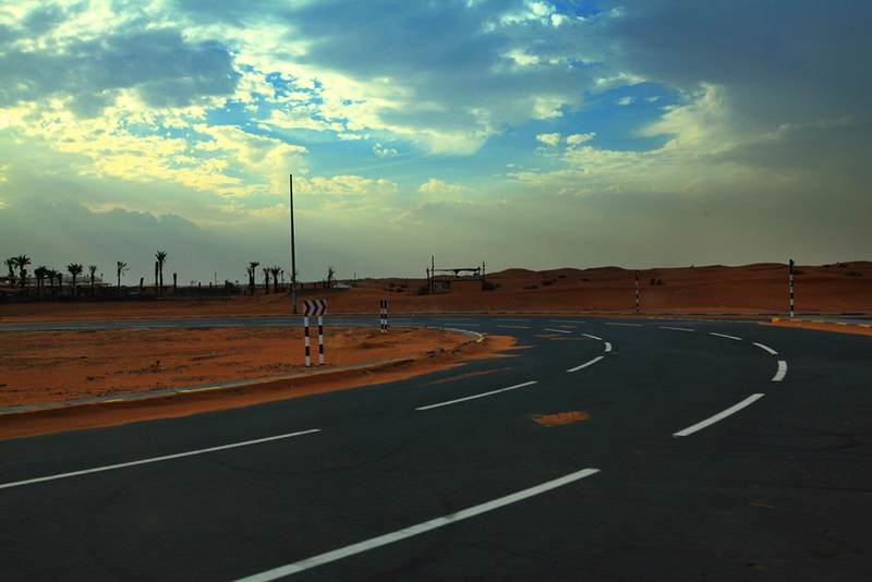 从迪拜的市中心出发,我们的越野车飞速掠过街道两旁郁郁葱葱的树木,十分钟后,两边视野所及的翠绿色,就逐渐被漫漫无边的黄沙所取代。一阵微风吹过,两边一望无际的沙漠就呈现在我们眼前,卷起星星点点的黄沙,在我们汽车前方的公路上旋转、飘舞。