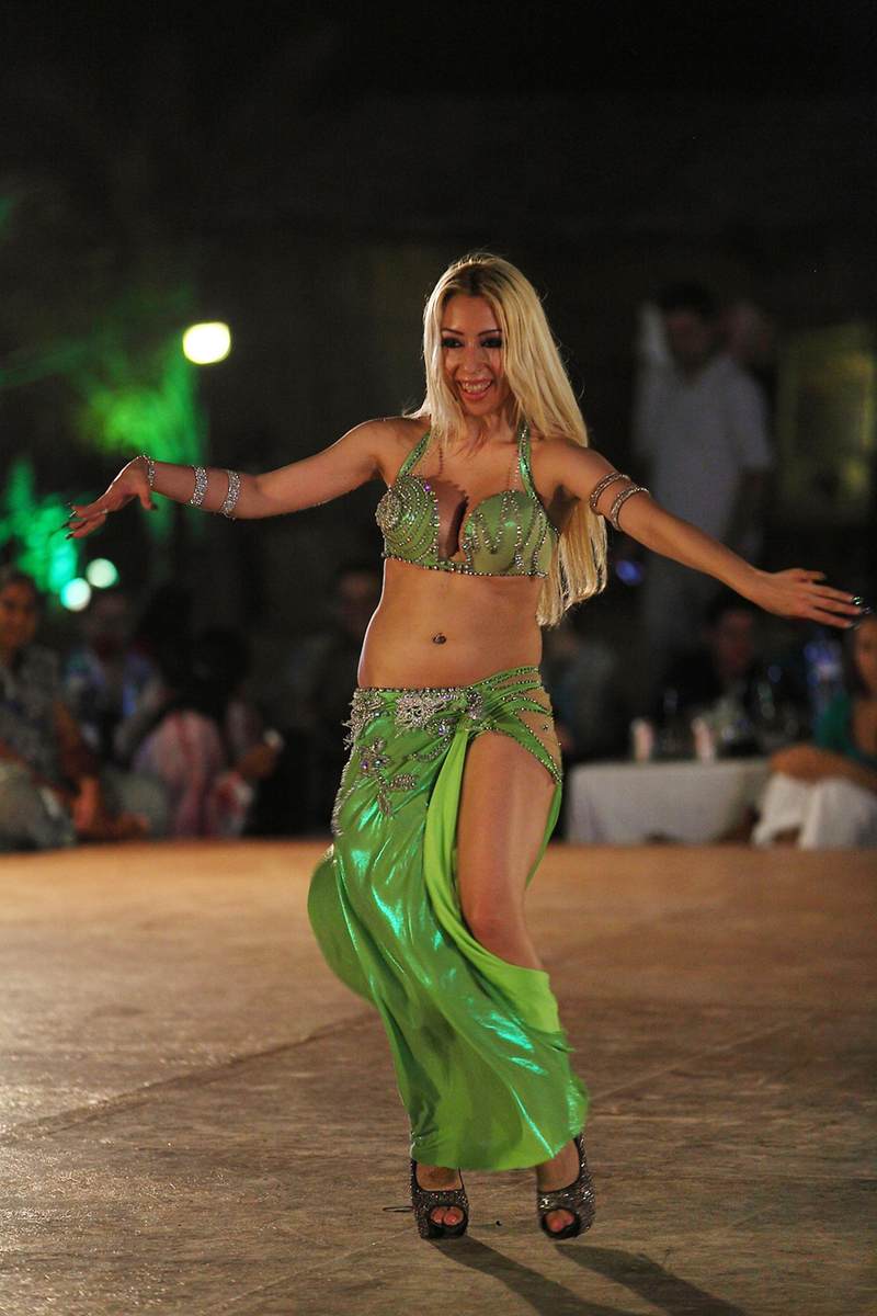 让我们所有人都没有想到的是,舞台上表演的竟然是千般娇媚、万种妖娆的肚皮舞,让我们顿时颠覆了对迪拜夜晚的所有想象。一路上,我们只看见过黑袍罩身的阿拉伯女子,何曾见过这样无限魅惑、无尽煽情的表演?所谓天边有月色,桌边有珍馐,身边有美人,迪拜的沙漠之夜,果然是令人无限地怀念。