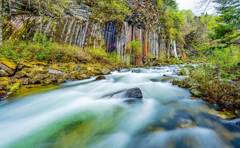 331国道鸭绿江段,最显著的地理特点是沟多。由于清朝封禁长白山,直到光绪年间才逐渐放开,当时的人们沿着鸭绿江逆流而上进入长白山腹地,给走过的一条条沟命名,从头道沟到二十四道沟。其中最吸引旅行者的是十五道沟,它是长白山区欣赏千百万年来火山喷发玄武岩柱状节理的最佳地点。附近的地下水从沟里各处涌出,又形成了瀑布群奇观(摄影/王杰)。