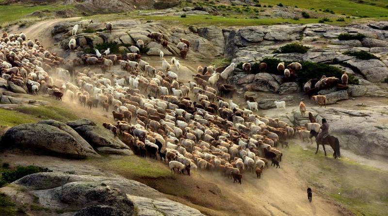 牛羊经过的地方,轻烟升腾,在漫漫的迁徙道路上形成别样的风景。